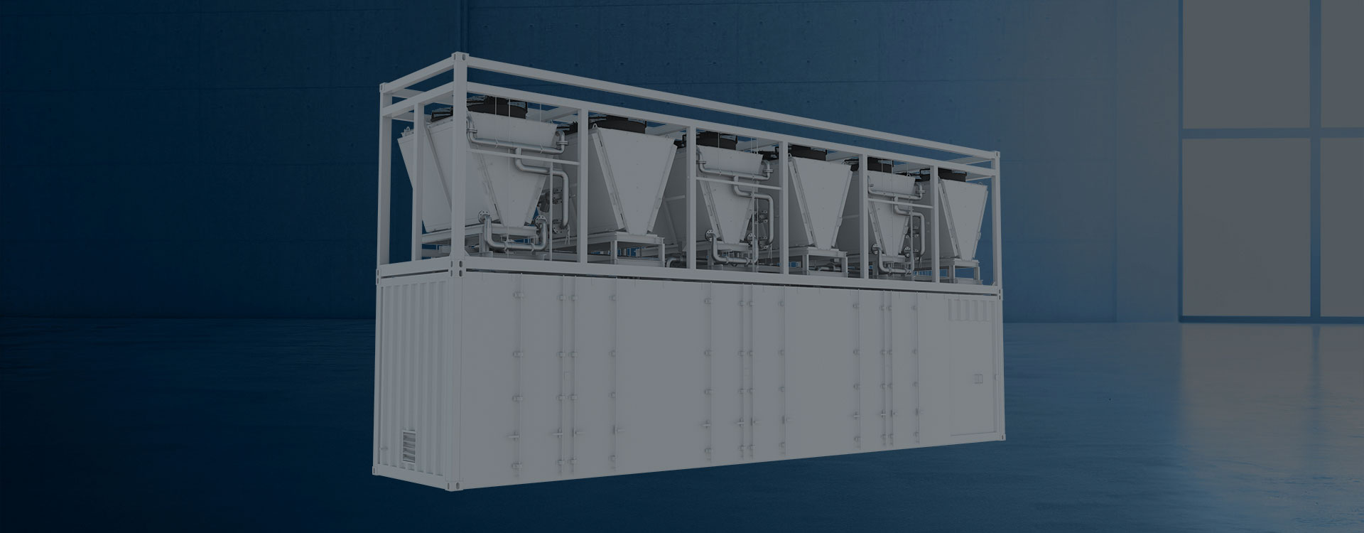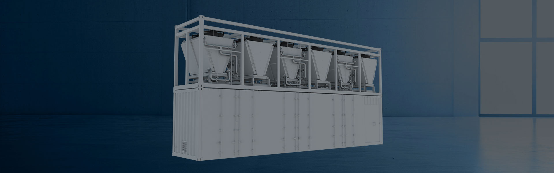 6)内部配置6台干冷器:换热量250KW,单风扇风量24000m³/h。