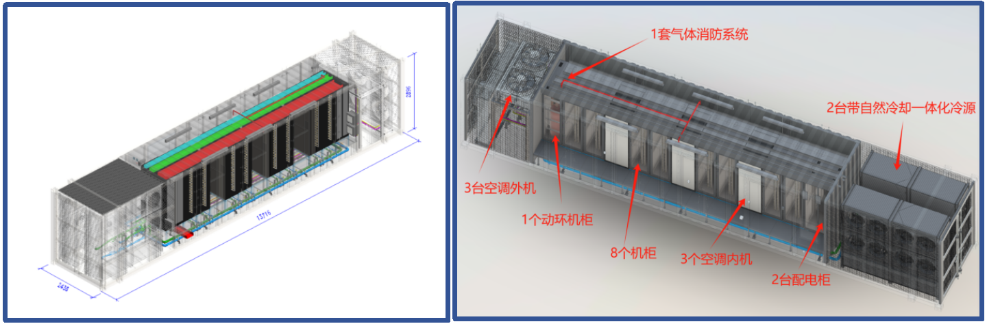 5)集成供配电、一体化冷源、风冷列间空调、机柜、动环管理、消防、防雷接地等功能;